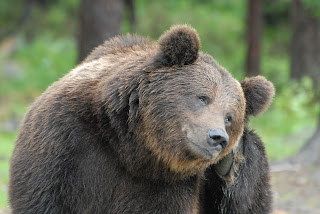 Next day it was off to Martinselkonen and the day after we had a night in the main hide there, this time in a patch of forest. Bears everywhere right from the off. Among bears, "might is right" and the youngsters quickly scuttled up a tree when a larger bear came along. There was a bear with 4 cubs, the two smallest of which spent much of the time up a tree! Also saw a black kite and white-tailed sea eagle. By midnight we'd had almost 7 hours of virtually nonstop bears, so most of us got a good sleep.