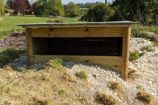 With the really physical work now over with, it was time to use a router (think carpentry) and cut out the slots for which my wooden planks wood fit in to neatly. The idea was to use as few screws as possible on the walls. Eventually the wood was cut to size and routed, transported to the hide site and the corner posts went in. Once all the posts were level and aligned correctly, I secured them with some of the chalk spoil and started to insert the wooden planking to make the walls. Using some ‘persuaders’, otherwise known as a sledgehammer and a hammer, slowly the walls took shape. I was then able to fill the rest of the excavation with more spoil, slowly burying the sides of the hide, except for the entrance.