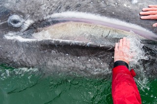 Sometimes being encouraged to the boats by their mothers if they are a little unsure, they open their mouths so we can tickle their baleen, and they roll over and over in sheer delight as we rub and scratch and kiss them.