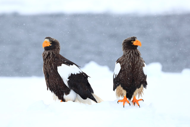 For me the highlight of any visit to Hokkaido must be the time with the Steller’s sea eagles. These huge birds are utterly breathtaking, alongside the white-tailed eagles which are found along the coastline. The town of Rausu is the perfect base for photographing the Steller’s sea eagle, with daily boat trips out to find these impressive birds. Their striking black and white plumage, with their vibrant, thick beaks makes these birds the perfect subject against the snow and ice along the coastline. As my group arrived in Rausu, so did the sea ice and we spent three days photographing the eagles with masses of ice all around the boat – it was spectacular.