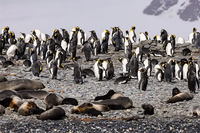 Let me give you just a little taste of what it's like. If I had one day left on Earth - and could spend it anywhere - I’d choose a particularly wild beach on South Georgia, called St Andrew’s Bay. It’s a real showstopper. Against a rugged mountain backdrop, 150,000 pairs of king penguins crowd the beach in numbers that'll take your breath away. It’s all a bit overwhelming.