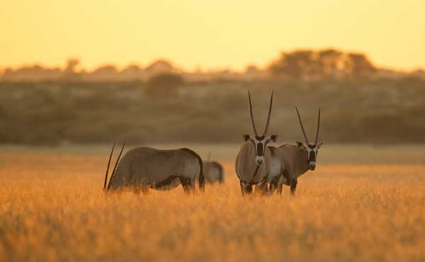Our afternoon was spent visiting one of the lodge’s sunken hides where we were fortunate enough to enjoy incredible low angle sightings of Namaqua dove, whilst herds of gemsbok and wildebeest came to the water to drink. As the sun began to set, we made our way towards the viewing tower, spotting ostrich along the way. We ascended the tower, where we were greeted by the lodge staff with a selection of drinks and delicious light bites as we appreciated the remarkable vistas across the reserve with the sun setting in the distance.