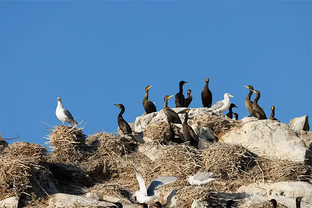 It was getting late in the afternoon now, and we began to head for home, but not before looking in and around Little Church Island and Church Island where there's known to be a lone sea otter … but he (or she!) wasn‘t visible today. In the distance, soaring high above Church Point in the thermals were 30 or 40 turkey vultures and as we cruised around the point and went past Swordfish Island we heard the blow of a humpback – hugging the shoreline and feeding slowly as it moved east.