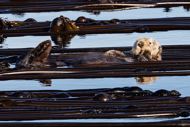We needed to stretch our legs, so we pulled in at Pedder Bay Marina for an ice-cream. From here we had another try for sea otter – this time successfully in an area of kelp around Race Rocks where there were also large numbers of both California and Steller’s sea lions – he was lying on his back amongst the kelp quite happy to be watched and photographed, front paws folded on his chest. It wouldn’t have been right to go for more than half an hour or so without whales, so it was no surprise when we heard the distinctive blow of a humpback, and another, and another. Four, and then five humpbacks cruising and feeding in a nearby channel as the setting sun was becoming ever more golden.