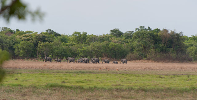 This was a family group of 12-16 elephants confidently, and unhurriedly, walking across the plain behind us. There are thought to be 40 or so elephants here that move freely between here and the forests of the Congo to the west.
