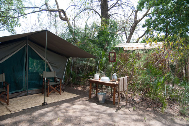 Sitatunga is a superb tented bush camp run by Dave and Una. This is its (and their) second season of operation. Mainly focusing on North Luangwa (where they have a main camp and a fly camp) they move to Kasanka for the bat season of November. Situated at the south-eastern end of the bat forest (mushitu forest) the camp is nestled amongst a ‘tree island’ and has a beautiful view over the low-lying papyrus swamp which at this time of year is almost dry. The tents are large, Meru-style tents with a private (but separate) shower and toilet. In addition to twin beds and a couple of useful tables, the tents have flooring mats around the beds and an exotic Persian carpet - which is brilliant - and makes the tent seem extremely comfortable