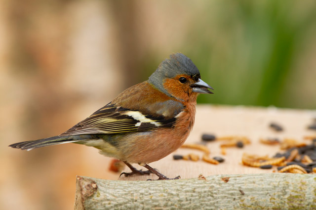The chaffinch is common wherever there are trees, including quite small gardens. Its unmistakable song has a toppling quality, as though something were clattering down the stairs before hitting the bottom with a loud crash.