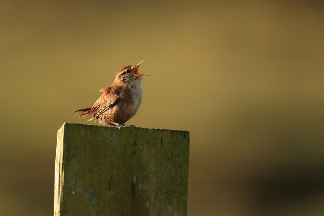 Wrens, for their tiny size, are amazingly loud. Their song is a fast, busy, whirring jumble which usually includes a characteristic loud trill.
