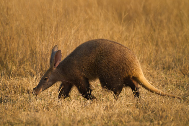 I was holding my breath and grinning so hard that I was sure it would pick up on my presence. A cloud of red dust was being created by thick, long, yellowing nails ... tools of the trade when foraging for termites is your profession. Its thick tail and powerful hind legs gave it stability as ant-eating chats patiently waited for their share of the feast. Crouched on my haunches, it was so close I could see individual eyelashes and scars on its skin. It turned away from us, its kangaroo ears glowing in the late afternoon sun and Rudy, my guide, silently beckoned that I follow. The best part of an hour later, we returned to our vehicle having walked the Kalahari dunes with one of the most sought-after creatures in Africa, an aardvark.