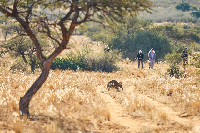 It may be hard to believe, but all of these species are a distinct possibility in this part of South Africa’s Northern Cape, and sightings of pangolin are particularly good in the winter months (June and July), when they are often found foraging for ants and termites in daylight hours. However, it’s not just about luck. A private guide, tracker and vehicle are standard here, and there are no set safari times – just head off into rolling red dunes as far as the eye can see, and state your preference for how and when you wish to explore them.