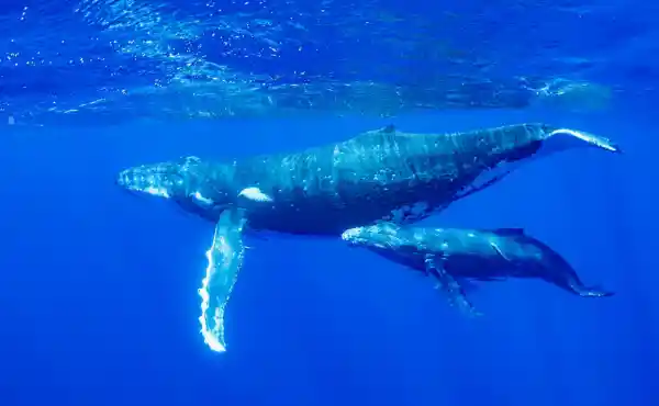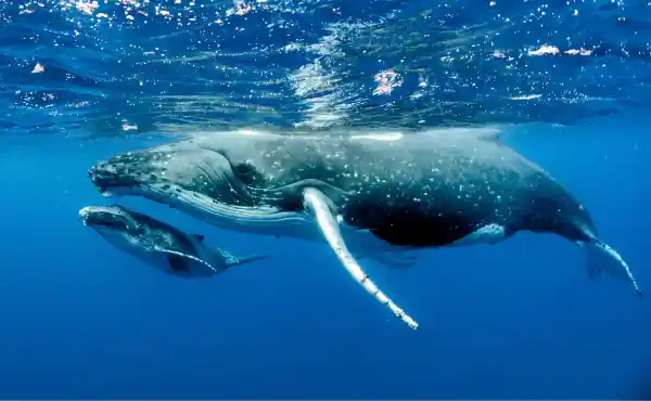 The whales head north from Antarctica to the South Pacific, arriving in Tonga around June or July time. They stay to mate, calve and nurse their young before migrating back to their feeding grounds in Antarctica around October time. August and September tend to be the best months for snorkelling with humpbacks here, when calves have grown in both size and curiosity, and can be more playful.