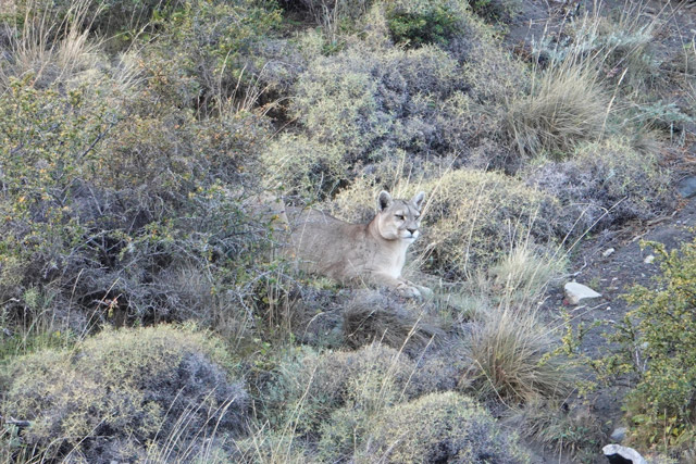 From a mother and grown daughter on a kill to a young male watching us austerely from his hilltop position, barely visible to the naked eye. And more; a stalking female that we’d waited three hours for in the hope that she’d move (she did!), watching cubs leap up onto a boulder repeatedly just to rough and tumble and push each other off, again and again and again. There's no doubt about it, these are gorgeous creatures. Graceful, powerful, agile and tough. Their home here in this beautiful, desolate environment on the edge of the South American continent leaves absolutely no room for weakness.