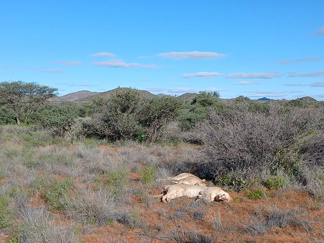 In March, the Kalahari was in green season, and my word, the bush was lush, beautiful and spectacular - a carpet of grass and devil’s thorn in bloom that stretched as far as the horizon. Migratory bird activity has picked up noticeably since my last visit in September and youngsters, particularly wildebeest, hartebeest and eland were out in force keeping predators well fed. We had numerous lion sightings, including two prides with cubs, plus wild dog and cheetah monitoring, which is always a pleasure on this wildlife conservation holiday. Sightings of both white and black rhinos with calves, and a brown hyena during sundowners one evening gave us plenty of opportunity to indulge in quiet observation. A real highlight was success with pangolin on three consecutive afternoons – incredibly lucky moments that I detail further in the trip report.