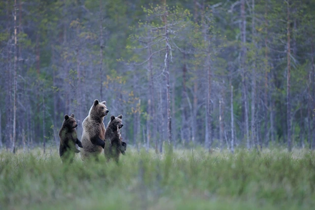 In Finland, my Boreal Predators Photography group and I were treated to quite a show as a family of bears, a mother and three of last year’s cubs partook in a game of chase with a lone wolf. Taking it in turns, the two species chased one another around, from side to side, before finally the mother bear had enough. Coming face-to-face with apex predators is always a thrill, but to see such incredible behaviour is quite remarkable. To top it all off the wolf decided to howl right in front of the hides. There’s something magical about sitting in the hides of Finland’s boreal forests, waiting to see what might appear."