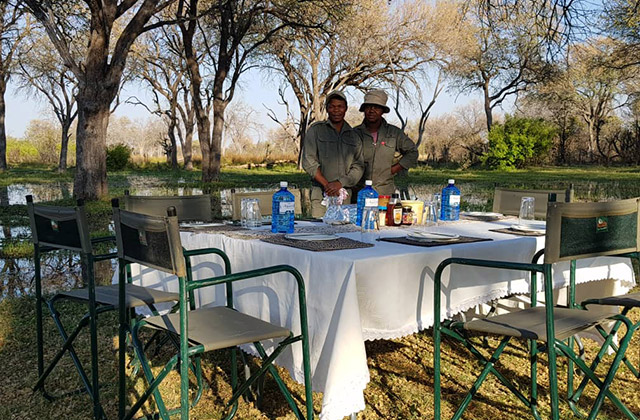 Eating outdoors – whether in the mess tent or under the stars around a campfire – added another glorious dimension. The days somehow revolved around meals: porridge, coffee and toast around the fire as the first rays of the sun crept into the sky, a leisurely brunch around midday after a morning’s game viewing, a fortifying afternoon tea and cakes (not that anyone needed much fortifying!) before the second outing of the day, then drinks and nibbles around the fire again, followed by dinner by lantern-light.
