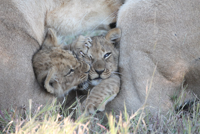 Of the other predators, we had some eight fantastic leopard sightings from very close: the best a magnificent lone male relaxing high in a tree with its prey jammed into a fork alongside it for safekeeping, and elsewhere a pair keeping watch from an elevated kopje, in search of a meal. Lion too were in evidence everywhere: a handsome male devouring a recent kill with obvious and much bone-crunching relish (although we missed the kill itself), the spectacle two brothers roaring to one another at dusk with such raw power that the bodywork of our vehicle vibrated in sympathy, and – in total contrast – the antics of a playful group of cubs with a pride of females.