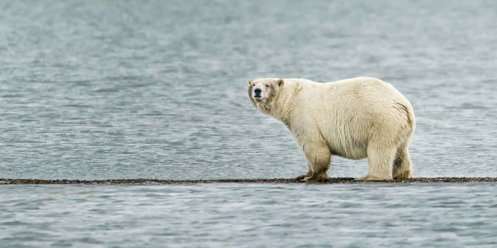 The polar bear population from the Beaufort Sea is estimated at 2,000 to 2,500; they are best seen in late summer along the coast as they are waiting for the ice to form. One of the major threats to their habitat is the controversial project of oil drilling in a subsection of the coastal plain known as ‘1002 area’. As the polar bear is a migratory marine mammal and sources its food from the sea, it is vulnerable to any spills that may occur in his feeding ground.