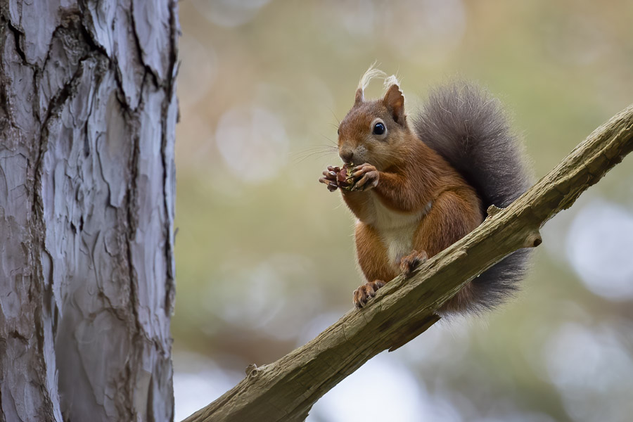 The UK population of red squirrels, once at 3.5 million is now estimated to be under 140,000, compared to 2.5 million greys. There are over 200 red squirrels that call Brownsea Island home and rely on the woodland to provide up to 80% of their food, which is mainly made up of pine seeds. They are shy, so not regularly seen, but their dreys can be seen high in the boughs of the trees and as the summer season goes on, they start to think about preparing for hibernation, and with this can be seen frequently foraging on the ground. As well as being cheeky and stunning to look at, they are central to the regeneration of pine woodlands. They begin their winter moult in September, so their ear tufts are likely to be more prominent, making for even more characterful images!