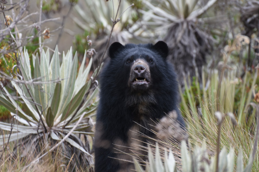 The spectacularly diverse fauna of the park ranges from jaguar and ocelot in lower altitude humid forest to puma, spectacled bear and mountain tapir in the high altitude páramo, a shrubby, humid grassland habitat above the treeline. The páramo is dominated by highly specialised plants, many of them found nowhere else, including the genus Espeletia in the daisy family and the giant bromeliads of the genus Puya.