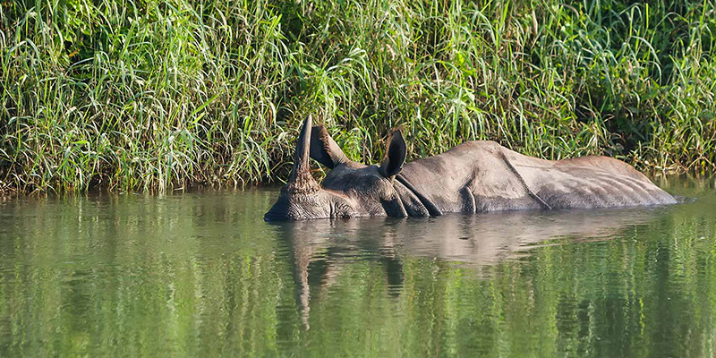 Nepal’s first national park is located in the lowlands of southern central Nepal on the border with India, 160 kilometres from Kathmandu along the twisting roads that negotiate the Himalayas. The relative isolation of this area has allowed wildlife to flourish. Over 480 species of birds have been recorded here, as well as many mammals, reptiles and numerous insects. Mammals include the endangered Indian rhinoceros, wild boar, sambar, muntjac, chital, rhesus, and hanuman monkeys, whilst reptiles include marsh mugger, and gharial crocodiles.