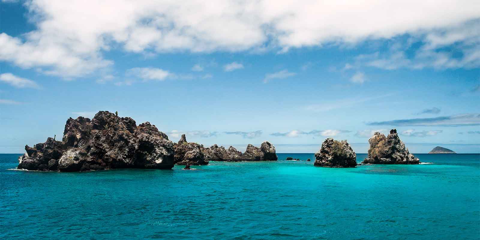 One of the best snorkelling sites in the Galapagos, this volcanic crater has been eroded by wave action, leaving the northern and southern sides sticking out of the water and creating currents between them. The coral reef in the middle attracts a great variety of marine life, and offers excellent snorkelling.