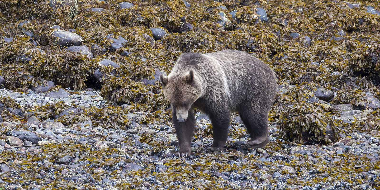 This remote area can be a place of immense silence in the calm of the temperate rainforest, and one of immense power in the face of the many thundering waterfalls that are fed by glaciers. Knight Inlet and Glendale Cove really start to come alive from late April onwards when bears emerge from hibernation and are eager to feed on the succulent spring growth - you can see as many as 15 grizzly bears and five black bears feeding on sedge grasses, mussels and barnacles along the shoreline. This is the time to see newborn cubs as they venture out for the first time with their cautious mothers. Most viewing is done from boats, which allows you to get remarkably close. Seeing bears at eye level without disturbing them is an unforgettable experience, and offers some of the year's best photographic opportunities, with lush vegetation and spectacular backdrops.