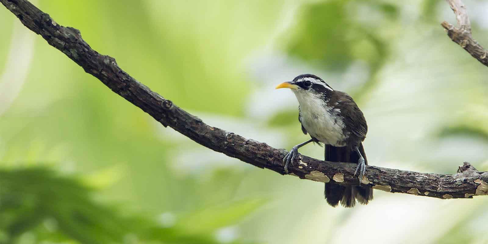 With luck you may encounter one of the ’bird waves’ that are a feature of tropical forests. Often the forest initially appears devoid of birds, but the arrival of a mixed species feeding flock transforms the scene, as half a dozen or more species suddenly appear in the same field of view. Udawattakele residents include white-rumped shama, Tickel’s flycatcher, emerald dove, white-bellied drongo, yellow-browed bulbul, scimitar babbler, brown, brown-breasted and grey-headed flycatchers, Indian blue robin and large-billed leaf-warbler.