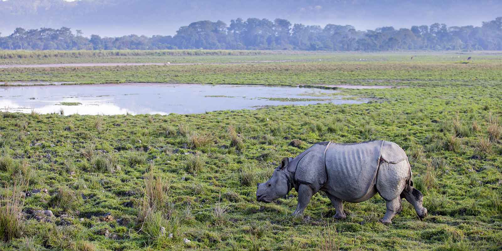 Kaziranga National Park is located in northeast India in Assam and is famous for being the last stronghold of the one-horned Indian rhinoceros. It is also home to large herds of elephant and wild buffalo.