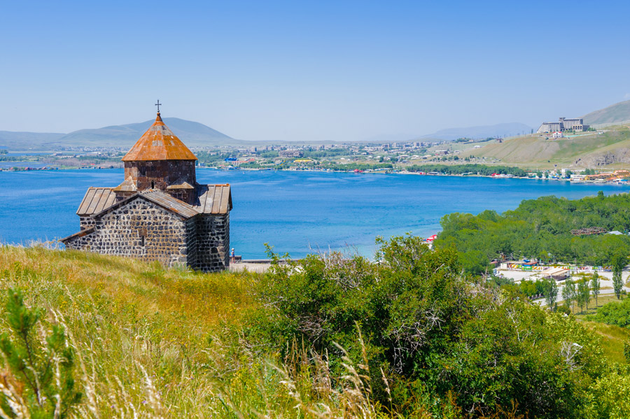 Lake Sevan is located in the centre-east of Armenia at an altitude of almost 2,000 metres above sea level, and is the country’s largest lake. The lake’s one island is home to a medieval monastery.