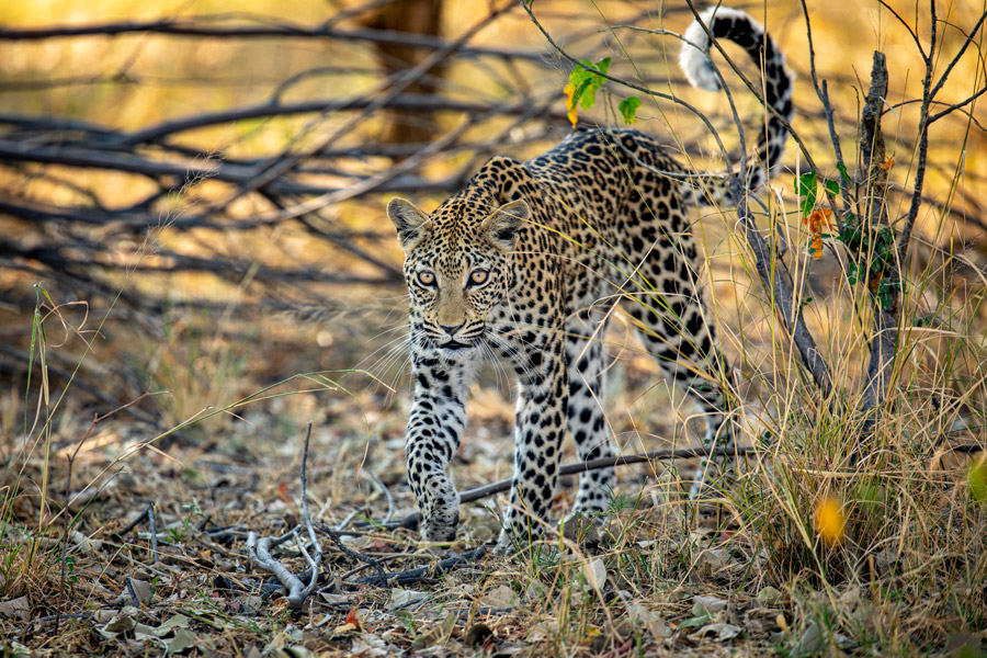 The landscape is stunning, with clusters of palms dotted across the open grasslands and riparian and acacia woodlands scattered and managed by elephants. There are also more extensive areas of mature mopane woodland, which support a great density of leopards and birds of prey. The seasonal marsh becomes a mecca for waterbirds, elephants, hippos and also where many of the predators congregate, affording excellent sightings.