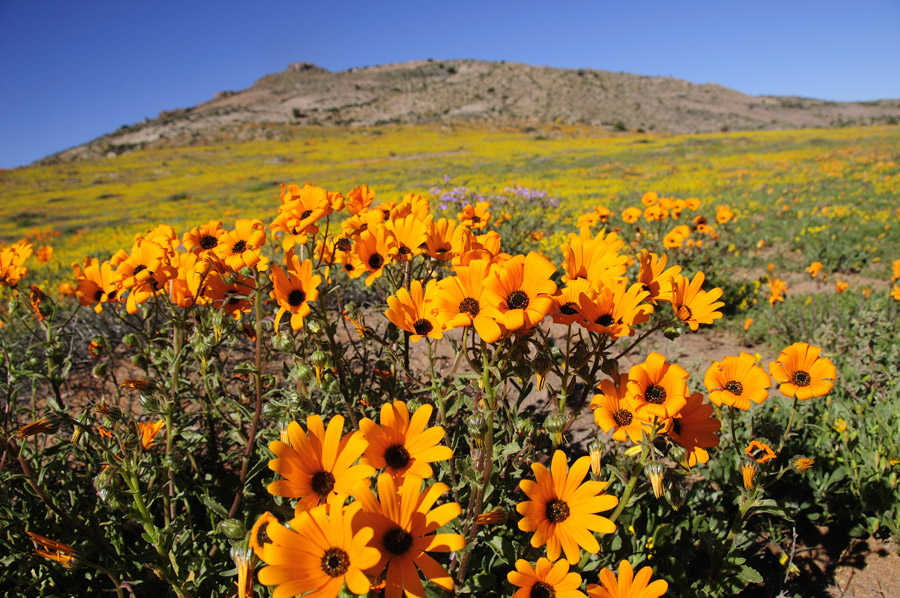 Following the west coast of South Africa across to Namibia, Namaqualand is known for its spring flowers blossoming in August and September in an explosion of colour, which would make any impressionist envious.