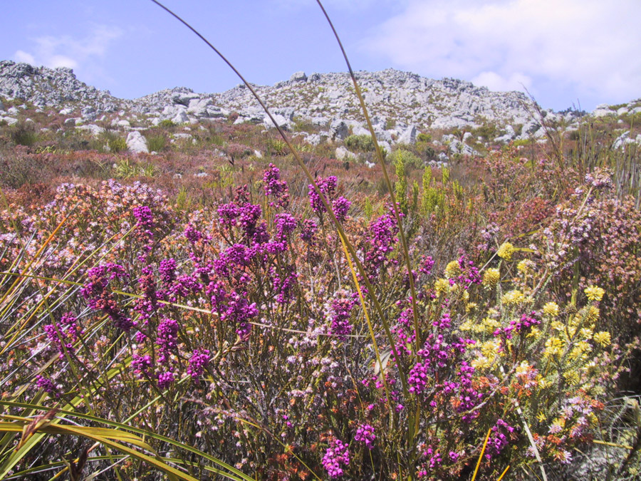 Namaqua National Park is an area covering 55,000 square kilometres located within the semi-desert Succulent Karoo Biome. This biome has a unique biodiversity with the largest concentration of succulent plants in the world, 40% of which are endemic and 18% threatened. These many-coloured flowers include daisies, lilies, aloes, and perennial herbs. Many pollinator insect and bird species are attracted to the flower’s nectar and pollen. The speckled padloper, the smallest tortoise in the world, can also be found in the park, and the biome also has diverse invertebrate and reptile species, some of which are endemic.