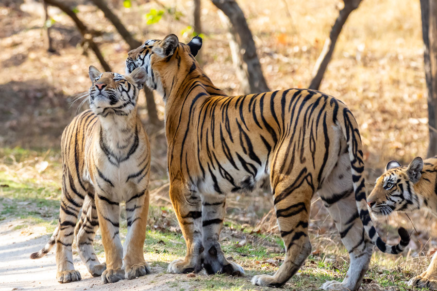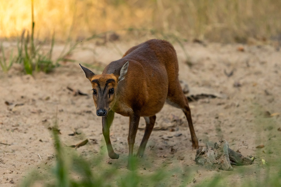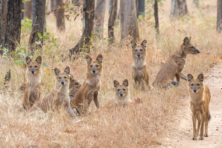 Pench’s dry deciduous forest of teak trees supports a rich variety of wildlife. In addition to the park’s famous tigers, leopard, dhole (Indian wild dog), gaur (Indian bison), sambar, chital (spotted deer), wild boar and sloth bear are all seen here. Rarer species include jungle cat and small Indian civet. The open habitat lends itself to wildlife viewing, but also offers striking and photogenic views of the area’s natural beauty.