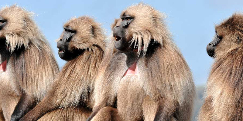 In addition to the breathtaking scenery, the Simien Mountains National Park is home to some of Ethiopia’s most iconic endemic mammals, alongside fantastic birdlife and flora that includes six-metre-high giant lobelias and fabulous stands of red-hot pokers. The park is best known for its population of geladas and, with an estimated population of 7,000 individuals, is regarded as something of stronghold for the species. With their thick golden mane and heart-shaped red chest, these magnificent animals are typically found in family groups of 20-30 individuals but often come together in mega-troupes of over 500 animals.