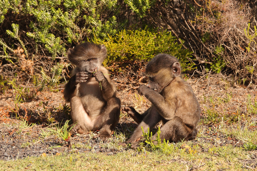 A large population of baboons lives in the Peninsula, and a dozen troops, varying in size from seven to over 100 individuals, wander on the mountains from the Constantiaberg to Cape Point.