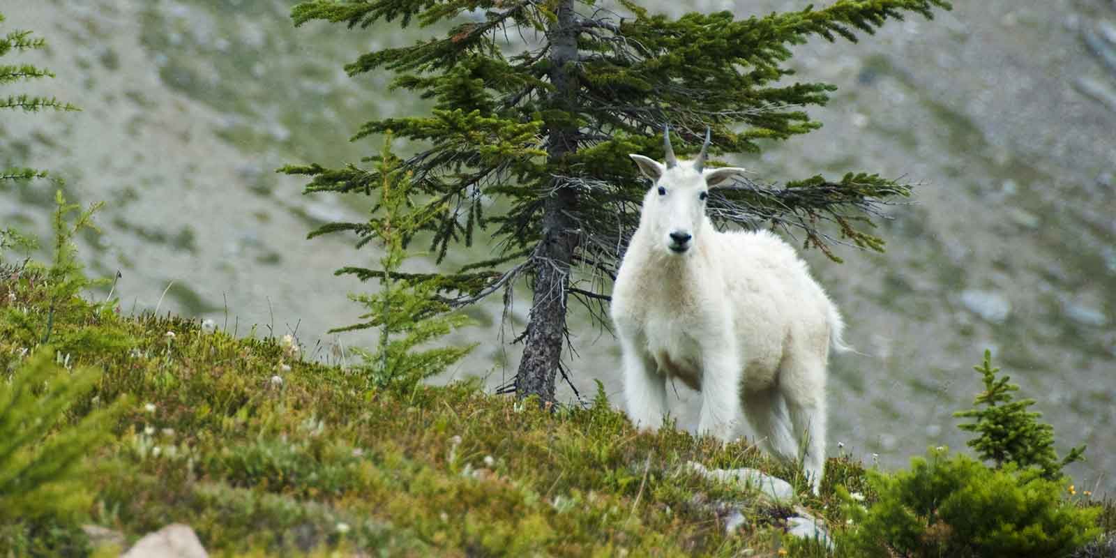 At 1,310 square kilometres, Yoho National Park is the smallest of the national parks that are found in the Rocky Mountains. Sitting to the east of the Continental Divide, the mountains catch much of the precipitation that falls, helping sustain lush boreal forests. These forests, along with the sub-alpine slopes, create an ideal habitat for mammals such as the mountain goat, hoary marmot, pika, elk and beaver.