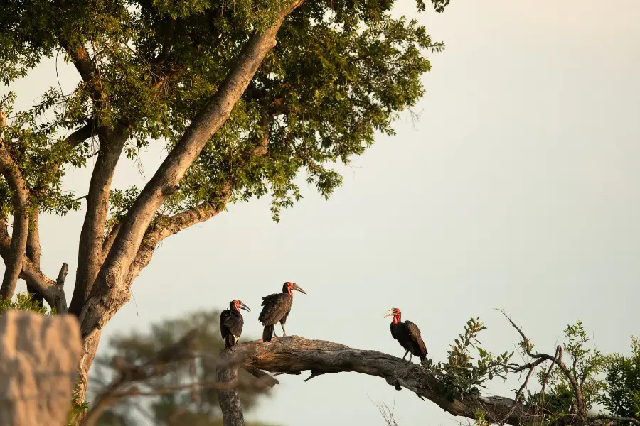 Raptors such as the black-shouldered kite and pale chanting goshawk can often be spotted, perched and scanning for small mammals and reptiles to hunt, as much larger white-backed vultures patrol the skies searching for carrion to feed on.