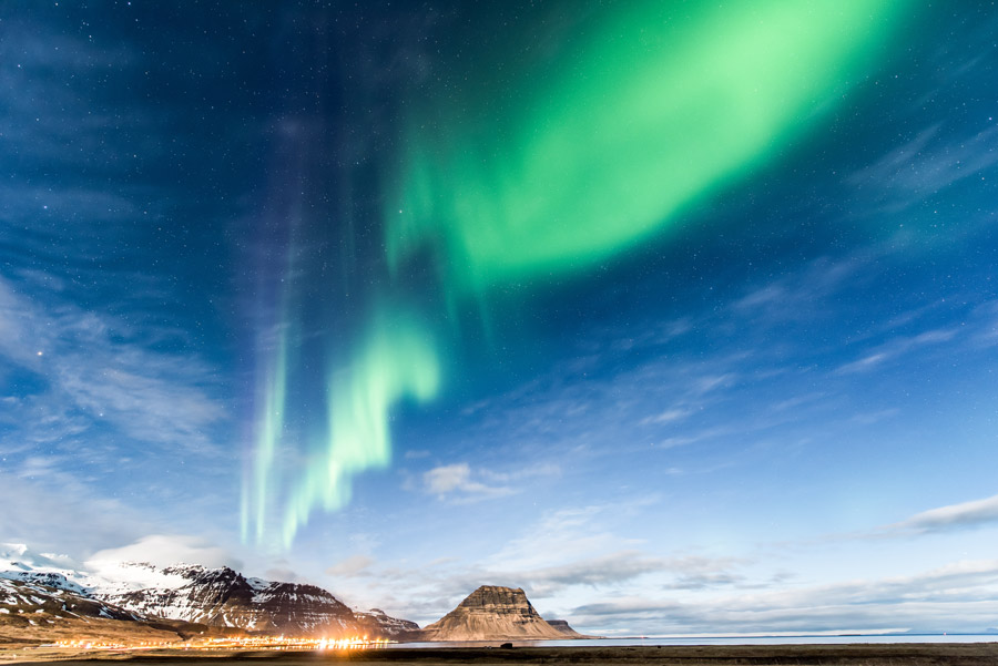 Continuing on your exploration of the Snæfellsnes Peninsula, make a visit to the fishing village of Grundarfjörður, home to one of the peninsula’s most photographed landmarks, the Kirkjufell. Translated as ‘church mount’, this symmetrical mountain towers from the shoreline.