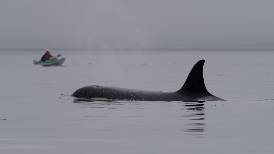 Kayak with whales, Vancouver Island