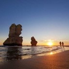 In the afternoon we recommend driving to the Twelve Apostles (75 kilometres, or 1-1.5 hours), a collection of impressive limestone stacks in close proximity off Port Campbell National Park Travel, whose coastal heathland is home to echidnas, wallabies, lizards and many birds. These stacks were formed by erosion – extreme weather conditions gradually eroded the soft stone to form caves in the cliffs, which became arches and in turn collapsed, leaving rock stacks of up to 50 metres high. Despite their name, there were only ever nine stacks but, due to continued erosion, one collapsed in 2005 and now only eight remain.
