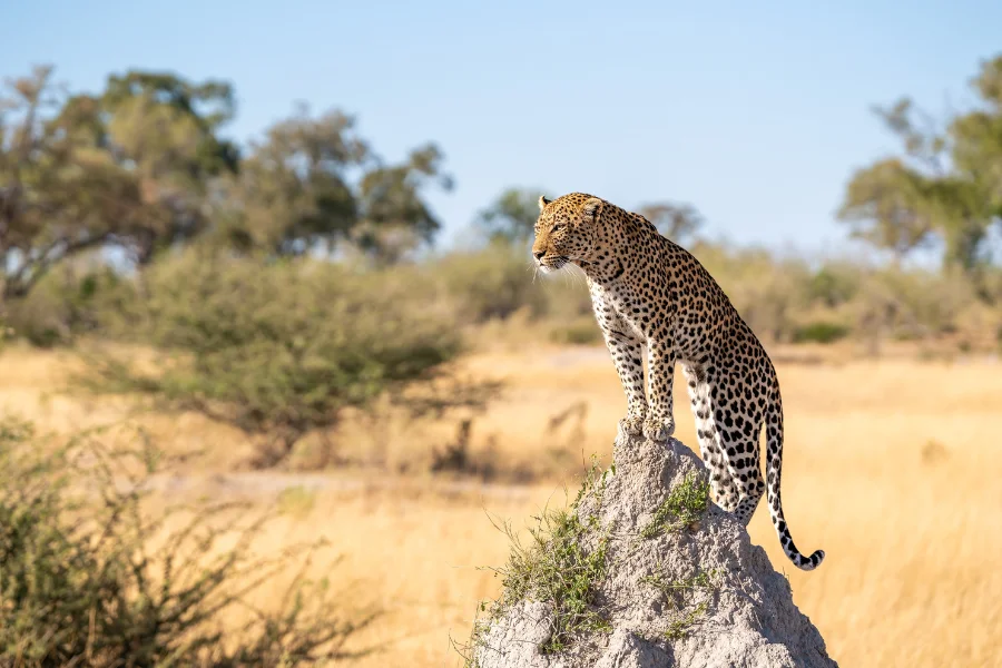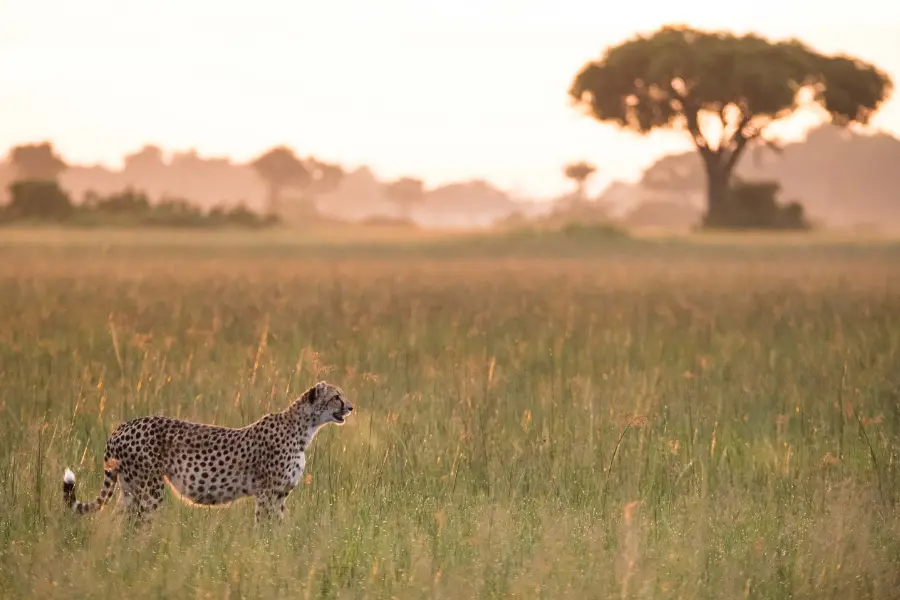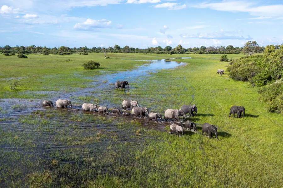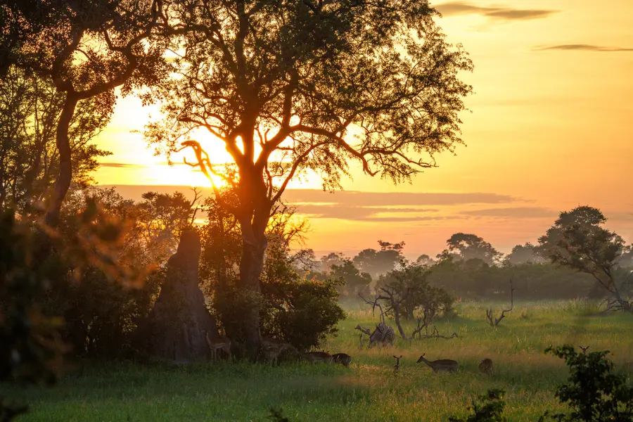 Waking to the calls of African fish eagle and red-billed buffalo weaver, your day begins with a coffee around the fire accompanied by your guide, before setting off for your morning game drive. Depart camp with the rising sun in the distance, your nostrils filled with the scent of wild sage as you traverse through the bush. Herds of elephants can be found feasting on mopane trees, stripping them of leaves with their trunks before moving onto the next one. Young elephants are a joy to watch as they clumsily practice using their trunks, slowly improving their control over the thousands of muscles they need to master to become fully competent adults.