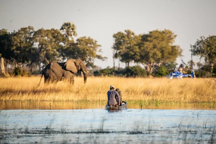 When booking the camp on exclusive-use (four guests), in replacement of the morning game drive, there's the option to book a scenic doors-off helicopter flight over the Okavango Delta during the sunrise. You spend an hour and a half in the air, appreciating the vast waterways, spotting wildlife from above and landing at a remote spot for a bush breakfast, surrounded by nothing but wilderness. Contact us to arrange this as part of your holiday.