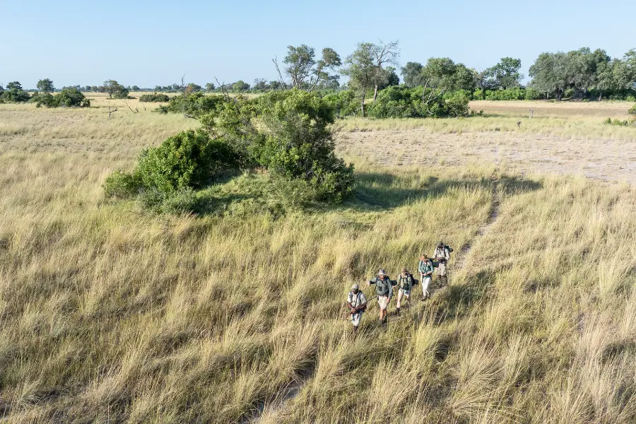 As your walk continues, you'll notice various droppings, from large balls of elephant dung to small pellets left behind by impala. African civets have unusually large scat for their size, and with an immensely diverse omnivorous diet, it can be interesting to sit and decode their latest meals as you examine their middens, known as ‘civetries’, which are also used as territorial markers. Grey go-away-birds will wail from the tree tops as you walk beneath, listening for the contact calls of lions before heading in that direction. Staying upwind of wildlife is particularly important to avoid detection, and you'll notice elephants raising their trunks to sniff the air when they sense something may be nearby.