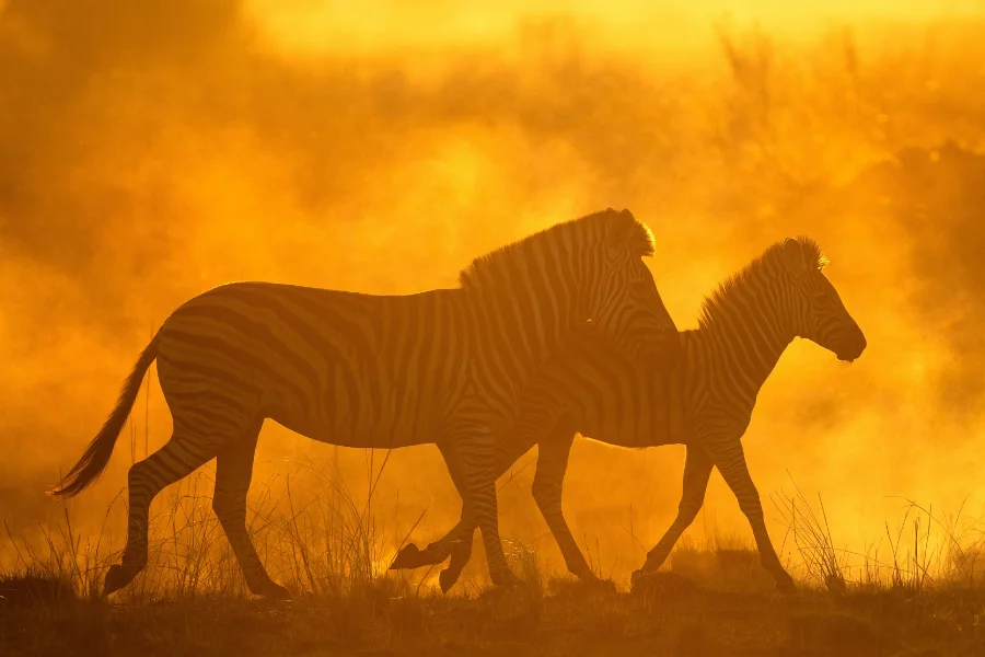 Midway through your drive, your guide will again find a safe spot to stop and disembark the vehicle, this time for a bush breakfast. As your tracker prepares the breakfast options, gaze out across the water as you scan for wading saddle-billed storks, hovering pied kingfishers and pods of bellowing hippos, before enjoying the most important meal of the day. Heading back into the bush after breakfast, you continue to search for all manner of species. Large herds of zebra can often be spotted, kicking up immense swathes of dust as they trot close together, creating the dazzling effect, believed to confuse predators as the abundance of stripes make it difficult to identify individuals to isolate.