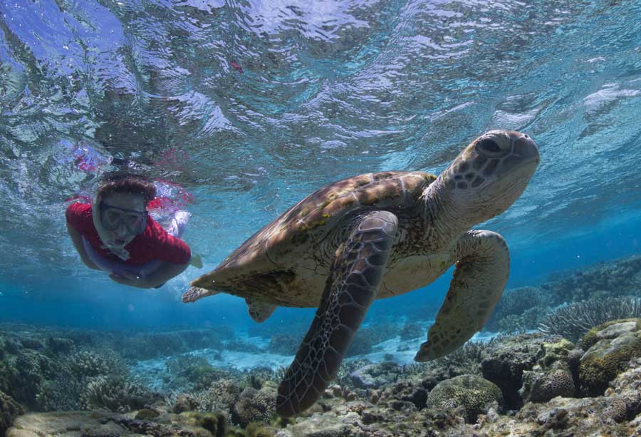 Enjoy a full day exploring the island, with various options. Join one of the reef walks at low tide, and venture into the lagoon from the beach to the edge of the reef. You'll see a multitude of marine life as your experienced guide introduces you to the complexities of the reef ecosystem. These walks run every day, tide permitting. Alternatively take a guided snorkelling safari to look for reef sharks, whale sharks, mantas and turtles by day, or head off on a nature walk around the island (guided and self-guided options).
