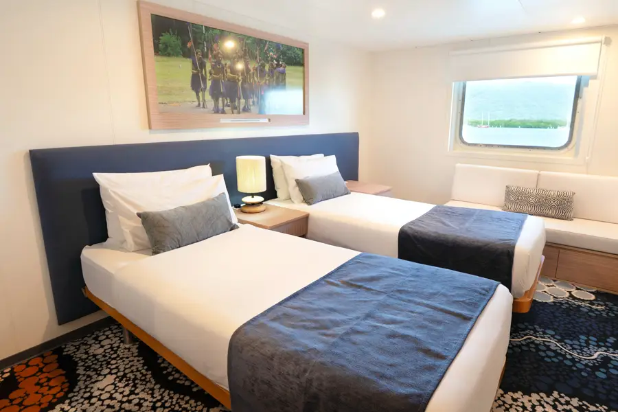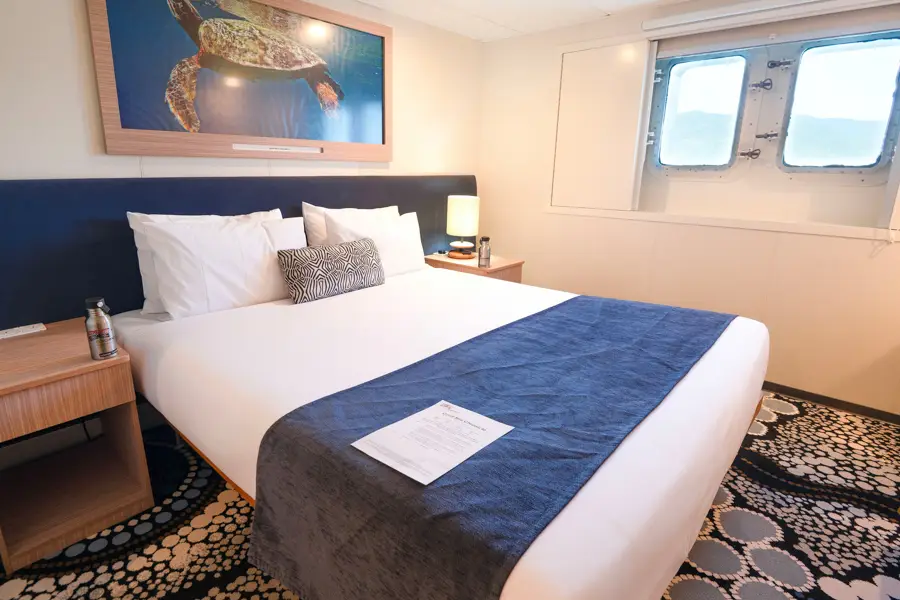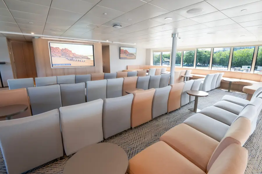 Offering a comfortable base for exploring Australia, Coral Discoverer accommodates up to 72 passengers in a choice of staterooms, sized between 15 and 20 square metres, all featuring unique artwork, en suite bathroom and individually-controlled air-conditioning. The sun deck offers a great social space and is seen as the on-board hub; other leisure facilities include the Explorer Bar, sun loungers and bridge deck lounge.