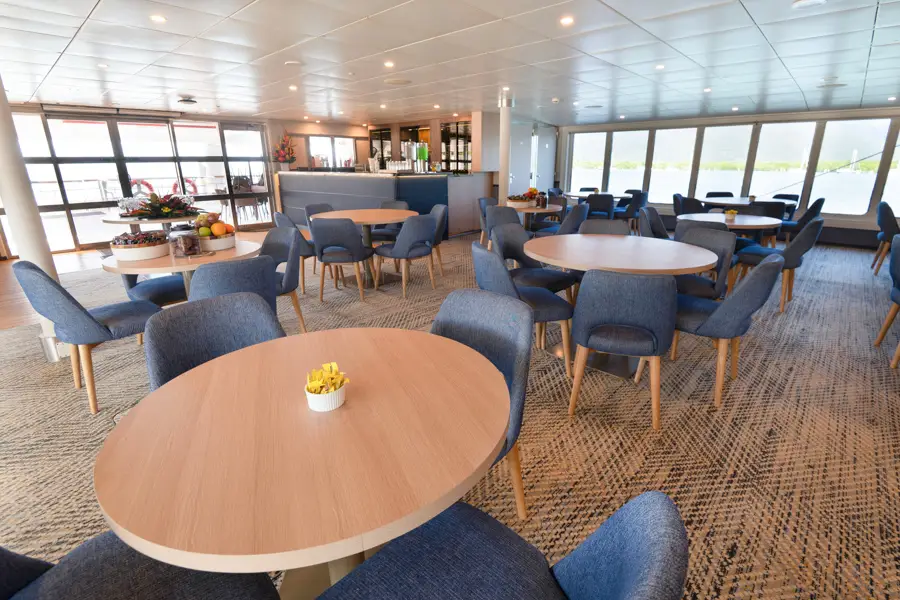Other public areas include a spacious modern dining room, a lounge and a reference library, both of which host a daily programme of lectures and briefings provided by the expedition leader who has extensive marine and local knowledge. The vessel operates an open bridge policy, so you can gain an insight of the operations and interact with the all Australian and New Zealand crew. For exploration of beaches and rivers, Coral Discoverer carries Xplorer, a tender vessel which can carry all 72 passengers.