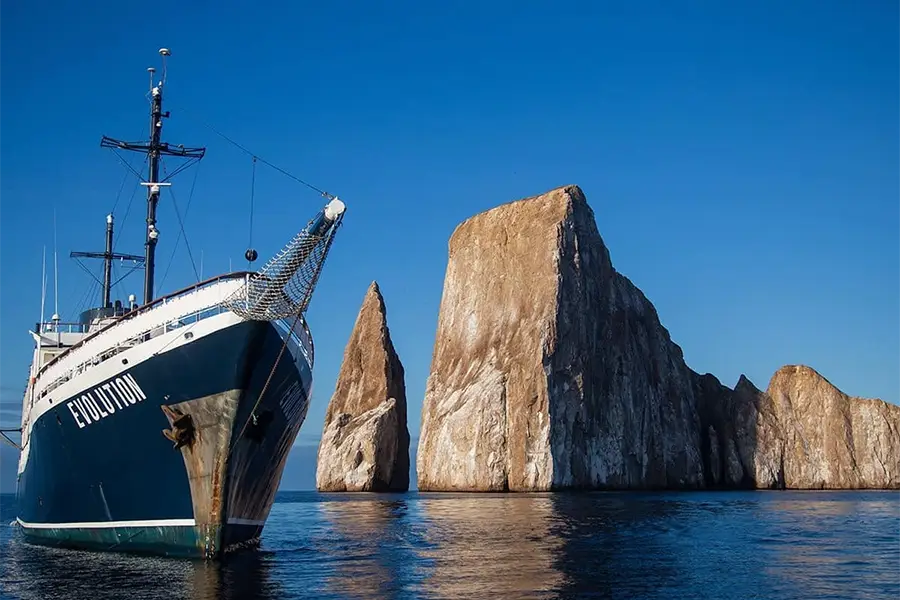 Step aboard the MV Evolution, a luxury yacht blending 1920s elegance with modern comforts. Enjoy refined style, spacious decks, and personalised service while exploring the Galápagos Islands’ breathtaking landscapes and wildlife.