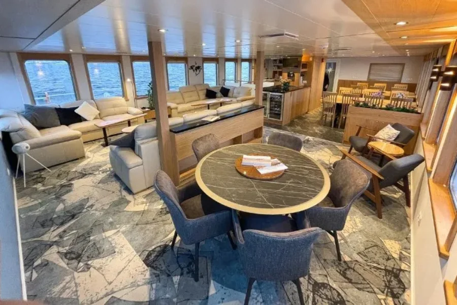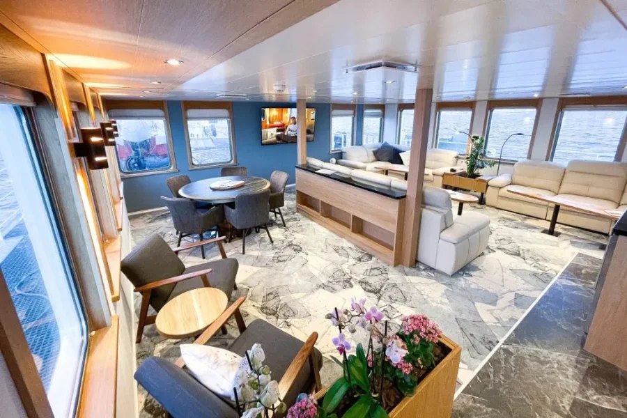 Explorer is equipped with a range of amenities to enhance life on board, including a sauna and hot tub for relaxation following days spent ashore or out on the water. Ample open deck space provides excellent vantage points for wildlife observation, while an open bridge policy offers insight into navigation and daily operations.