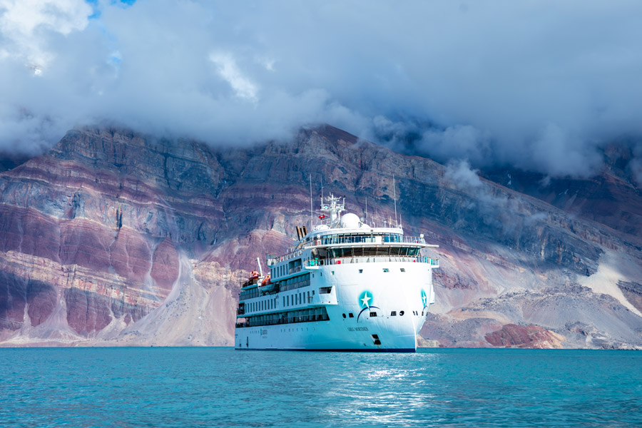 The Greg Mortimer, with its innovatively designed ice-strengthened hull, is a purpose-built small expedition vessel designed to sail to remote locations that larger vessels cannot reach.